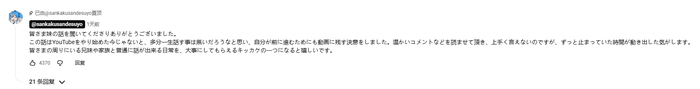 视频下方,三角头老师也表示:“读着大家温暖的评论,我真的难以用语言表达,感觉时间仿佛静止了一般,又重新开始流动起来。我希望我的故事能激励你们珍惜日常生活中与兄弟姐妹和家人正常交流的时光。”