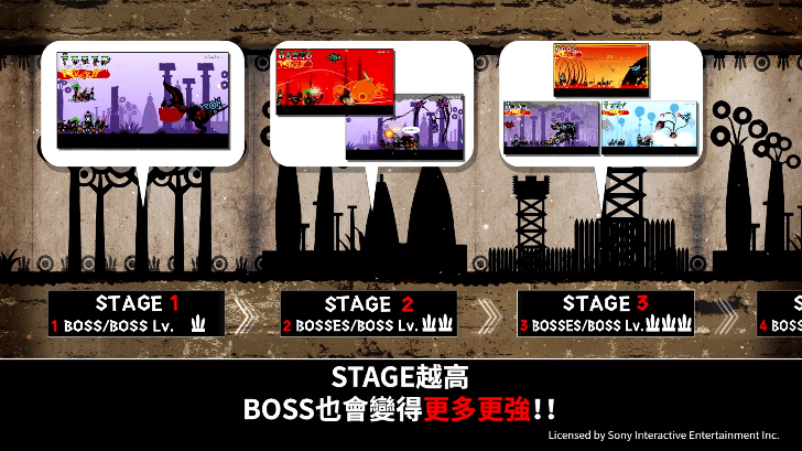 玩家可以在此模式中使用"PATAPON"、"PATAPON2"主游戏中培育的部队击倒接连登场的头目。
