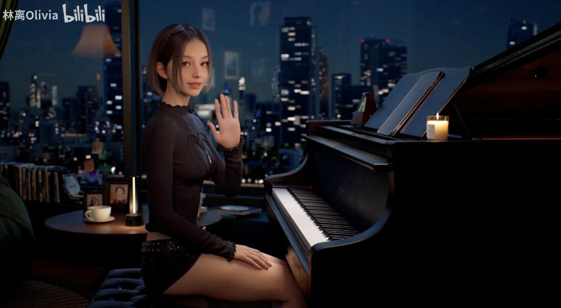后来的「PJSH」到 《Varsapura》,其实都是沿着鹿鸣这条路继续往下走的。今年8月,另一个虚拟人项目「林离Olivia」也是这一思路下诞生的产物。在GameLook看来,林离弹琴时的写实化的肢体表现,包括手指、腿部发力等细微动作,以及真实光阴渲染效果的呈现,也为《Varsapura》挑战二次元向影视化工业制作靠拢打下了基础。