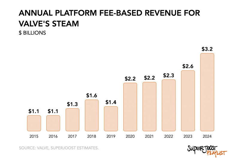 Steam本身更加强大。Valve并未公布确切数字,但自2015年以来,Steam的用户基数大幅增长,平均游戏库的规模也在扩大。玩家在Steam上投入的沉没成本越高,客厅设备就越具吸引力。而如今玩家的沉没成本比以往任何时候都要高。