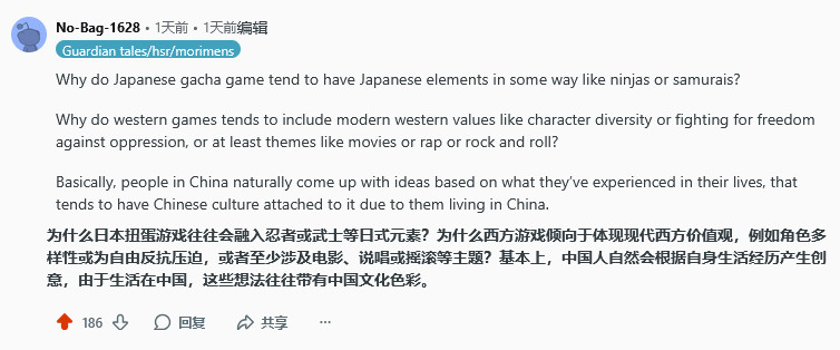 也有评论直言,日本不少新作仍停留在“挂着热门动漫IP、用静态立绘和简单数值堆叠战力”的粗放模式上,在玩法深度与内容密度上与《原神》等头部作品存在明显差距,这样的产品很难支撑长线运营,更难在海外市场树立口碑。